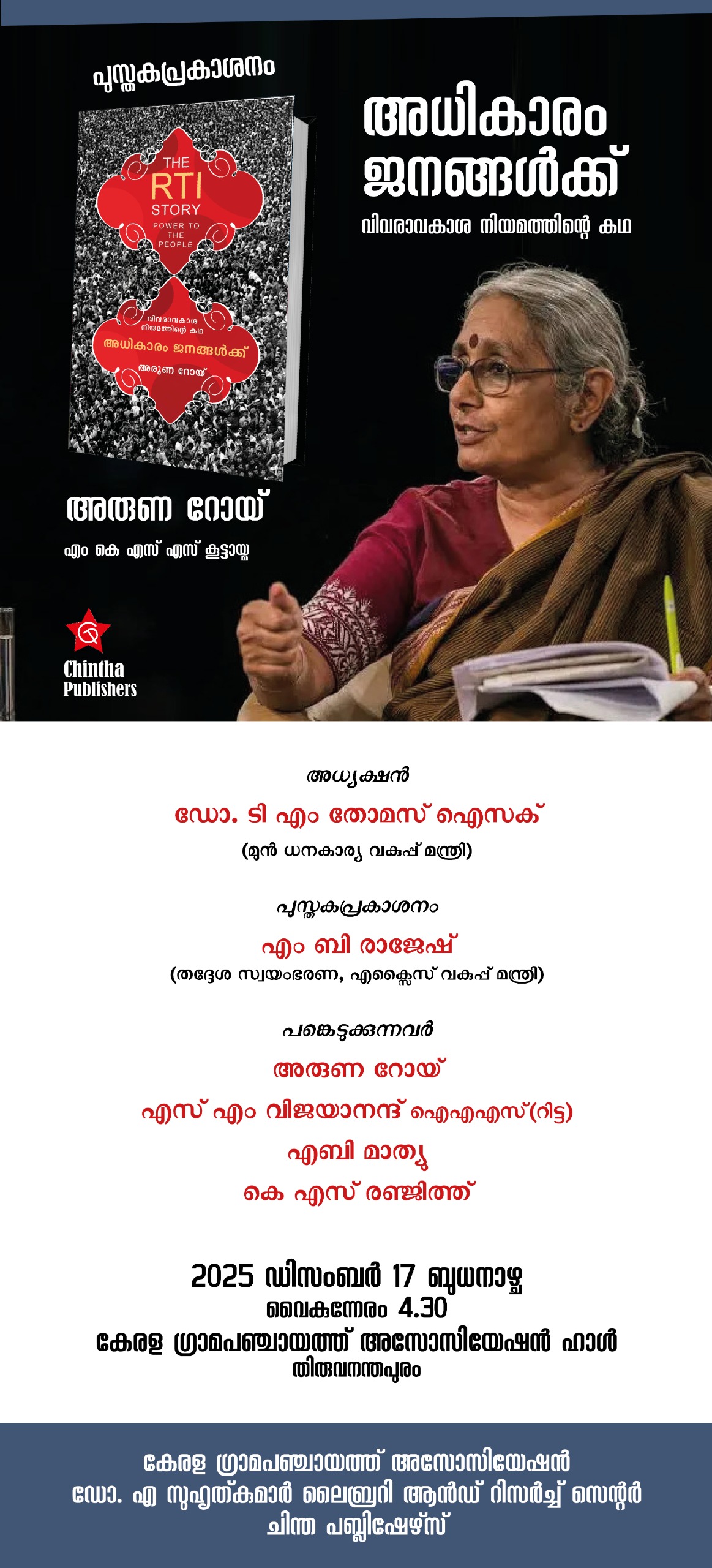 Dr.A.Suhruth Kumar, who unexpectedly left us, was a Legal Professional, Author, Orator, Poet, Professor of LAW, Science Propagandist and a Voluntary Activist, who gave indelible contributions. He had a dedicated life as a Law College Professor, KGOA State Secretary, Editor of KGOA News, Executive Director of Grameena Patana Kendram, Consulting Editor of Chinta Publishers, Leading Activist of Progressive Movement, Associate Editor of Employees Forum Magazine and Honorary Director of Legal Resource Center, KILA, and an active member of Sastra Sahitya Parishad and Balavedi. Suhruth was at the forefront of the agitations for decentralization in Kerala and was voluntary activist to strengthen the local bodies after the 73rd and 74th Constitutional Amendments